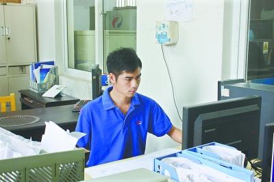 住院3个月,他学习用左手吃饭、穿衣,刚开始由于颈椎受伤,连筷子都握不住,过了两个月才恢复握力,出院时生活基本能自理。当他回到学校,面对老师同学依然是满面笑容,并未变得消沉自卑。此时,正值大三毕业,学校为他推荐了几份工作,最后他选择了现在的岗位,主要工作是电脑平面制图。