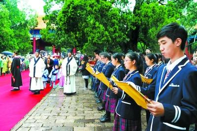 孔子诞辰2566年 国子监孔庙大成殿前举行祭孔大典