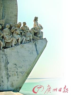 在里斯本发现者纪念碑上, 葡萄牙航海辉煌年代的开创者亨利王子手拿帆船模型,凝望远方。