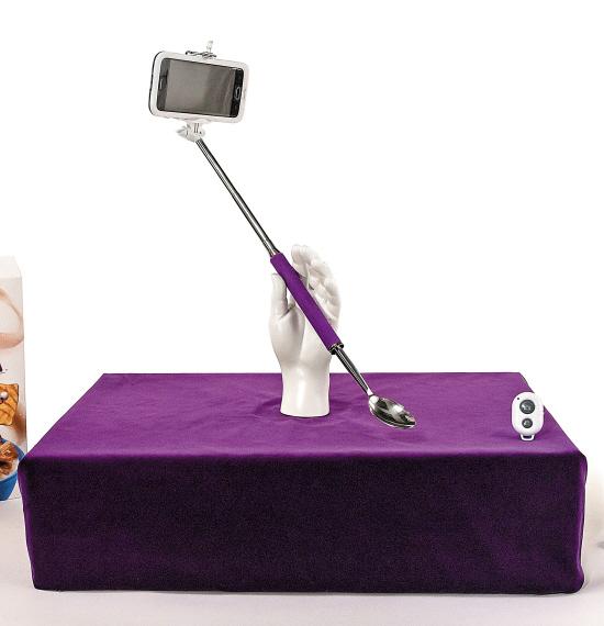 这把“自拍勺”说普通也不普通,因为一把普通的勺子哪里能够有随意延伸30英寸长(约76厘米)的勺柄?!且通过蓝牙控制器,还可以边吃东西边自拍,带出去旅游,似乎还可以起到环保的作用——不要再用方便筷或者公用的餐具,反正你都已经自带了!