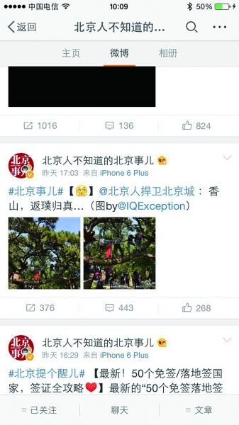 微博曝光游客爬香山古树拍照 公园呼吁文明游园