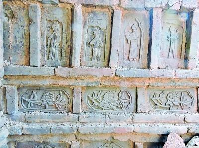 据渭源县博物馆工作人员朱亮介绍,古墓呈长方形,由墓门和墓室组成。墓门南开宽0.94米,墓道深0.9米,穹顶四角攒尖。墓室总长1.98米,宽1.5米,高2.01米。20块侍女图墓砖描绘了舂米、端茶盏、行礼等基本生活状态,另有王祥卧冰图案和28块花卉纹墓砖,墓室里有一男一女两具骨骸。 (通讯员王纲 记者宋喜群)
