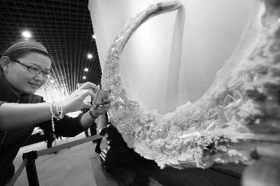 猛犸象牙雕刻艺术品吸引市民参观 摄/记者 曹博远