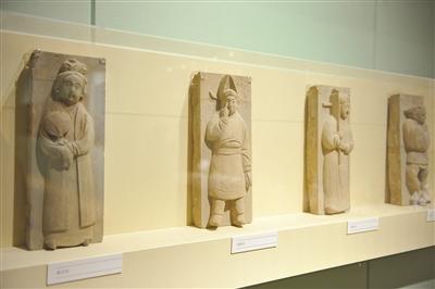 此次展览展出了一座完整的墓穴。墓主人为一男一女,从墓葬规模看应是当时较富有的社会普通阶层。南壁中间以写意手法做一戏台,内有四人表演。在砖雕上这四人的角色由左至右分别是末泥、副末、副净和装孤。