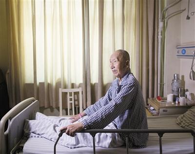 2013年3月17日,抗战老兵韩玉衡在海淀医院的病床上。