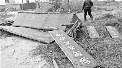 到17日,孙庄村村民孙双福携孙氏族人轮流盯守被毁墓地6天了,这片墓园曾经的大门被拆成几截,原本悬挂在门两侧的牌匾散落一地。驮着墓碑的石兽身首分离,一些墓碑已经被黄土覆盖。