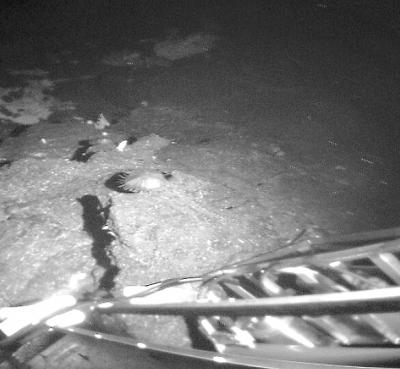 AtBk6钻井底部图像,显示钻脚前海底裸露的岩石和薄碳酸盐层