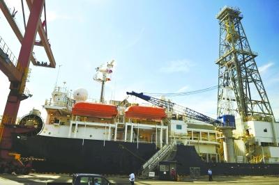 2日,美国“决心”号钻探船停靠在斯里兰卡科伦坡的港口 新华社发