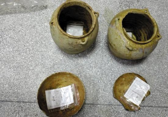 “发掘面积2200多平方米,共发掘出21座古墓,多为南朝到唐代的墓葬,也有零星东晋和宋代墓葬。”广东省文物考古研究所田野考古研究中心石俊会是本次考古发掘项目负责人,他说,21座墓葬中,砖石墓13座,土坑墓8座,目前并未发现有墓志等能证明墓主人身份的物品。这批墓葬群中出土的随葬品主要是陶瓷器生活用品,包括罐、碗、杯以及少量碟、壶等,共50余件。石俊会称没有发现这批墓葬群被盗。