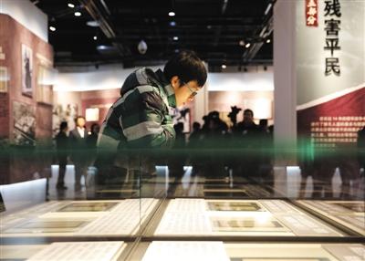 昨日,市民观看档案。当日,多件南京大屠杀日军罪行新佐证在中国人民抗日战争纪念馆展出。新京报记者 卢淑婵 摄