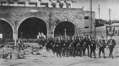 日军在挹江门举行所谓的“入城式”。