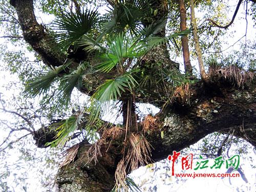 12月24日,先锋村76岁的村民钟爱梅告诉记者,30多年前,村民们发现樟树横枝上长出了一棵小棕树,如今棕树已有2米多高。在这棵樟树的另外两根横枝上,还生长着两棵树:一棵棕树约0.9米高,估计5年树龄;一棵枇杷树,约0.7米高,估计4年树龄。