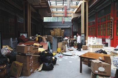 昨日,北海公园北岸仿膳饭庄新址,大厅内堆满从旧址搬来的物品。新京报记者 薛珺 摄