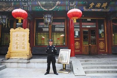 昨日,北海公园,琼岛漪澜堂,仿膳饭庄,工作人员在院内执勤。新京报记者 薛珺 摄