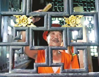 老师傅传统手艺立功 土漆翻新成都望江楼(图)
