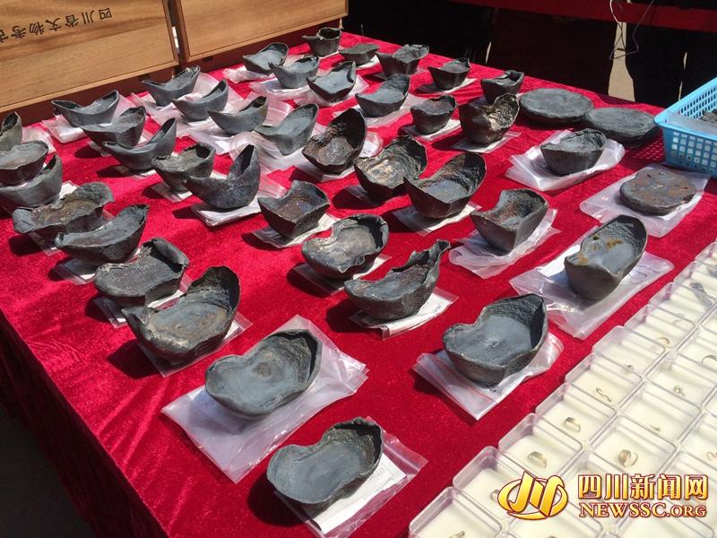 四川彭山江口沉银遗址部分文物亮相 璀璨夺目