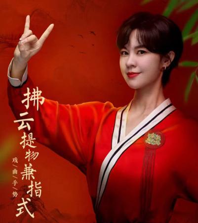 戏曲手势是为塑造人物服务的,作为一种舞台艺术,手势不能孤立地表演,而要配合身段进行设计。手势是将人物内心的喜怒哀外化出来,所以要配合眼神、道具、水袖、脚步等同步表演。