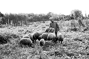 1986年圆明园北远山村住户在放羊。
