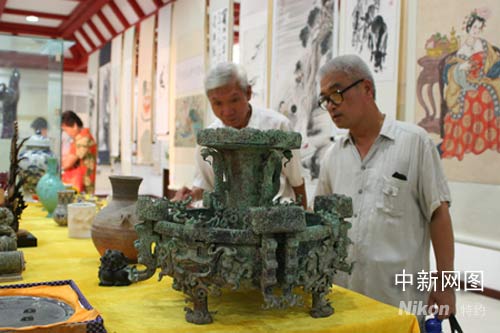 现为世界收藏家协会会员的王之羲,在美术、书法方面颇有造诣,还专攻立体油画、立体国画并获得多项国家专利。此次“现”宝,有黄若舟、王镛、范曾、冯其庸、程十发、李可染、沈鹏、伊藤东海等多位国内外大家的书画作品;有其本人的创作;玉器、青铜器……件件价值连城,难得一见。