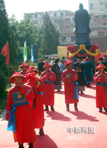 据了解,吉林文庙祭孔大典,是公祭和家祭同时进行,公祭采用现代祭孔,由各个层面分别拜祭,家祭为祭孔乐舞表演,使用的是清朝服饰和礼制。吉林文庙为乾隆皇帝御批的清代建筑,吉林市又是满族发祥地,同时清代祭孔礼制也是历史上祭孔活动最完备最鼎盛的时期,所以吉林市使用清代礼制祭孔。