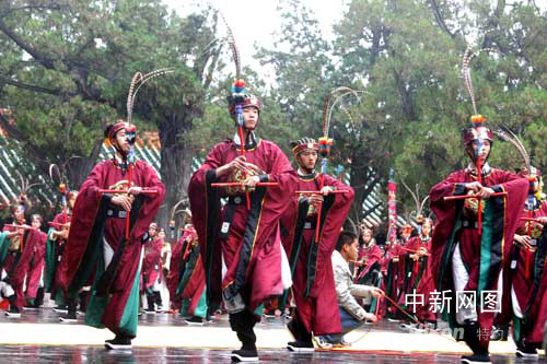 图为在公祭孔子的仪式上表演的祭孔乐舞。作者:王超