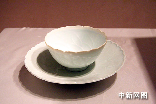 记者还看到,一组青白釉叶脉浅腹盘和青白釉叶脉纹芝碗,均属于影白瓷器。无论是碗还是盘,釉色均白中闪烁着青色,青里泛着白光,特别是胎身上的纹叶形状,几乎与现代工艺相媲美。“仅仅是普通的日用瓷,就有如此高的制作工艺水平,足以反应出南宋时期,中国瓷器业的鼎盛和发达。”专家介绍说。