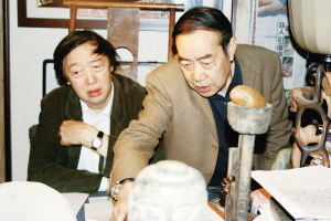 贾平凹诚实而憨厚地点头微笑着,用浓重的陕西口音如数家珍般向大冯介绍自己的“宝贝”。