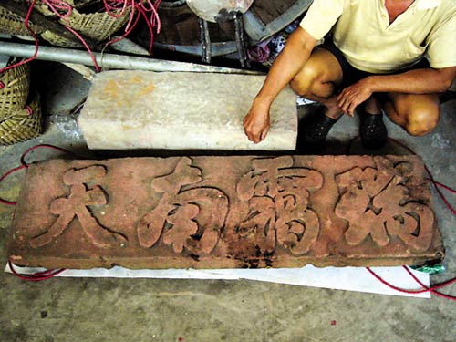 从此,隔三岔五地,袁伟坚睡到半夜时,必定要起来去到隔海庙,看看古匾是否还在。妻子很是不解,几番追问,袁伟坚才道出了事情的原委。妻子用行动支持了他的做法,时不时还提醒他到隔海庙去。