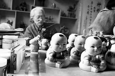 无锡:惠山泥人厂的工艺师正在制作泥人。杨凯 郑娜摄
