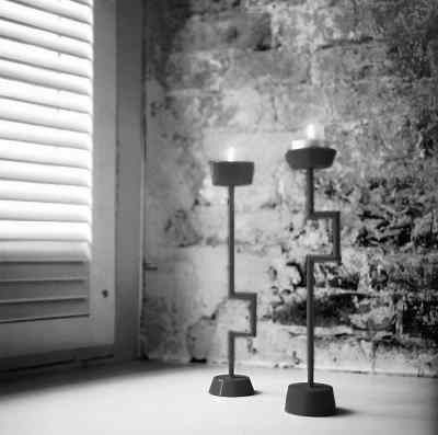 记者在8个小屋间流连,品味着展品——在中国文化耳濡目染的滋养下,也得力于改革开放30年后中国经济实力的提升,民间智慧、传统古物,被设计师重新发现和定义,创造出新的富含东方情趣的创意物品:以不锈钢为材质设计制作的插香座——“笛”,是设计师吕永中“香火”系列中的一个作品。香插的非常别致在于,当点燃一根香,插好后,烟会从笛的12个小圆孔里次第袅袅飘升,让人仿佛看到时间正在缓缓地流逝,也赞叹传统乐器竟能如此诗意地挪作他用。“喜字烛灯”则是吕永中早期的设计。烛台设计是一根转了4道弯的线,匠心所在的是不用一条完整的材料,而是在转弯位置用了焊接技术,使线条透露出中国风骨里的“方正”的“方”。无论是“笛”还是“喜字烛灯”,应该说都是我们熟悉的,却又着实给人带来新鲜的冲击。