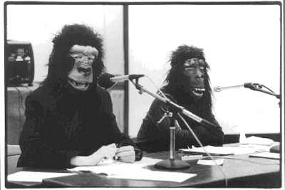 “游击女孩”戴着大猩猩头套的行为表演和海报设计
