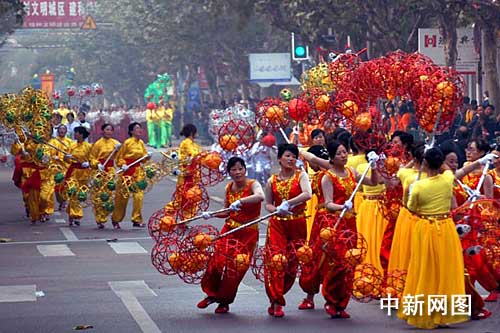 中新网上海11月18日电 (刘淇 黄春晖)“贤城风情——解放路民俗行街活动”在此间拉开帷幕。在一辆大滚灯彩车开道下,表演队伍自南桥路口一路往东,开始精彩纷呈的行街表演。