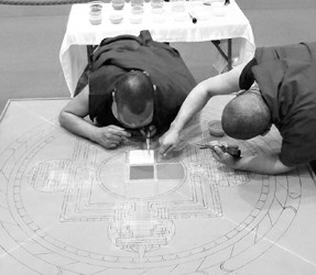 “这些天然颜料制作方法几乎失传,如今又慢慢发芽、新生,不必太担心了。”才旦多吉介绍说,由于唐卡颜料的制作工艺复杂,且历来是师徒(父子)相承,有的甚至一脉单传,维系力量孱弱。自古以来,绘画和制料分属不同行当,唐卡画师需去工匠那里购买颜料,而很多工匠连素描都不会。才旦多吉回忆,上世纪90年代中期,随着老一辈工匠的离世,后继乏人,颜料制作日渐式微,这使大量唐卡画师遭遇有订单缺颜料的尴尬。