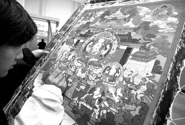 2006年,编号Ⅶ—14的“藏族唐卡”被列入国家级非物质文化遗产名录中的民间艺术类别;2008年北京奥运会期间,“格萨尔千幅唐卡展”在北京民族文化宫成功举办……政府致力于保护发展藏民族优秀传统文化,让唐卡画师们感慨良多。