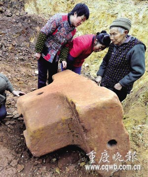 昨日,本报以《綦江赶水山顶挖出神秘金属墩》为题,报道1月22日采矿工人从赶水镇洋渡村附近一座山峰顶上挖出一个重近4吨的金属墩。金属墩所处山峰四面崖壁陡峭,坡度约70度。从坡顶到最近的公路约有半里地远,靠人力几乎不可能将这只金属墩运至峰顶。目前一种说法在当地流传:金属墩是张献忠攻打四川时,在当地设兵工厂留下的铁墩,内有黄金。