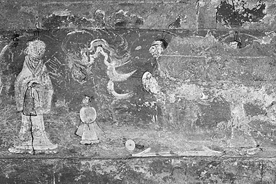 据考古负责人马明志介绍,老坟梁墓地年代集中在汉代中晚期至新莽时期。在去年发掘的100多处墓葬中惊喜地发现了3座壁画墓,这些壁画多数绘于墓室内,绘画题材主要有青龙白虎、车马出行以及升仙等,体现出浓郁的道家及儒家的思想内涵。