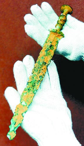 福建建瓯市出土的春秋战国时期青铜短剑。