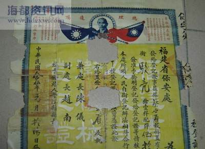 蔡先生的这张老证件,是无意中从他人手中购得的。证件正面写着“福建省人民自卫枪械登记证”(如图),证件背面详细标明持枪人是晋江一个农民蔡某看,枪支用途则为自卫,上面还写明枪支的种类和子弹数量。因该证颁发时间是民国25年,至今已有70多年的历史。为了便于持枪管理,发证单位还为这把手枪编了号。