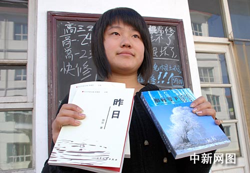 中新网太原3月10日电(记者 张雷杰)在山西一个县级中学、一个地地道道的十七岁农村女孩,40 多万字作品、一连创作三本言情小说,已是山西省作家协会会员、中国纪实文学研究会会员的高中学生张乐, 声称要和国内知名少年作家韩寒一比高下,这些无不显示出她张扬的个性。