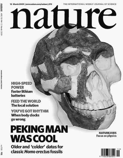 《自然》封面的头骨图像下方,是一句黑体大写的英文双关语:“北京猿人酷(cool)”——也有“凉”之意;该杂志配发评论也说,最新测定成果将北京猿人的生存时间推向了一个更寒冷的年代——77万年前地球正处于一个小冰期。