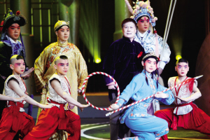 昨晚颁奖晚会上的最大亮点莫过于著名表演艺术家裴艳玲携众弟子登台献演。在京剧《响九霄》的主题音乐中,裴艳玲的众位弟子分别扮作哪吒、沉香、武松、林冲、陆文龙、钟馗、响九霄、赵云等亮相,依次展示各个人物最为观众熟悉的经典动作和片段。当裴艳玲唱着《响九霄》的四平调走上舞台时,掌声雷动,经久不息,众弟子围绕在老师身旁。正可谓“名家宝刀不老,新秀层出不穷”。