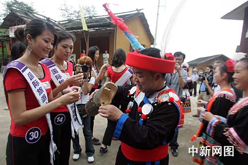 中新网4月26日电 (记者 应妮)在广东参加2009国际旅游小姐中国区总决赛的61位选手近日来到连南县,走进岭南地区少数民族——瑶族生活的世界里,探寻和了解瑶族人时代生活的风俗风情。