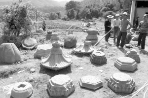 4月23日,瑞安高楼乡上泽村70多岁的曹仲生老人见到笔者就高兴地告知:“我们挖出了40多件古代宝贝,是宋朝石塔构件!”