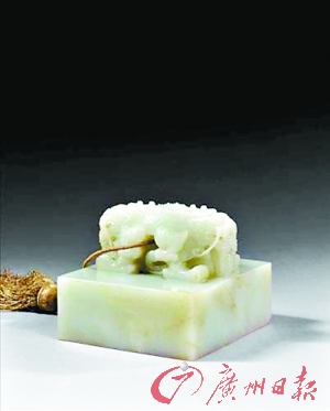 中新社巴黎四月二十九日电 中国北京圆明园遭掠夺文物——清乾隆年间玉玺印章“九洲清安(晏)之宝”二十九日下午在法国巴黎的一次商业性拍卖中被拍出,成交价近一百六十八万欧元。