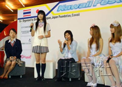 中新网4月30日电 日本政府为宣传本国年轻人流行文化,日前派出由美女担纲的“可爱大使”,赴泰国等地参加推广活动。