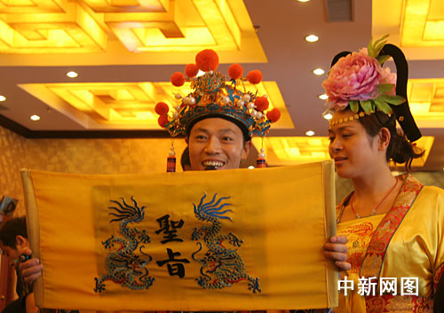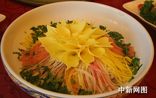 抵达洛阳,最先品尝的就是鼎鼎有名的“水席”。洛阳水席很有讲究,总共二十四道菜,上菜顺序有严格规定。所谓“水席”有两个含义:一是全部热菜皆有汤——汤汤水水;二是热菜吃完一道,撤后再上一道,像流水一样不断地更新。服务人员清一色的着唐代宫装,还有专门请的演员扮成太监模样,为客人宣读圣旨以助兴,字正腔圆,颇有古风。