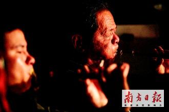 台上演的是白字戏《金叶菊》,它曾是“若要哭,去看《金叶菊》”的著名悲情粤剧,还在香港拍成过电影,回到白字戏里时,令人大感新奇。演到忠臣遭谗害时,戏台后陡然断了配曲,台上人空空地扯着嗓子大“喝”两声,台下人好像也断了呼吸。接着“将军不死沙场上,不许将军定太平”的唱词,主角真、假嗓转换着把高音扯到了天上,“一字一声血”,唱出粤剧所不见的排山倒海之势。