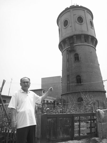 水塔通体由红砖垒砌,呈倒圆锥形,约6层楼高。塔身上方开有圆形窗户,木质楼梯绕水塔周围盘旋可达顶端。“工厂迁走后,这个水塔一直在使用。”孙宪周透露,目前,该水塔仍在提供生活和消防用水。