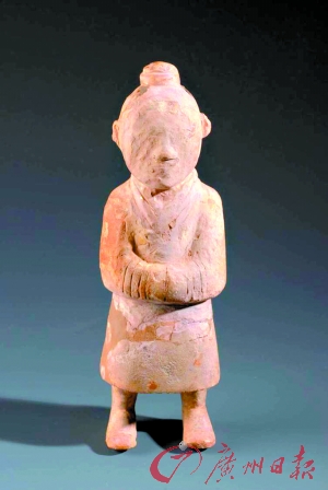 在男主人的随葬物中,两个不到15厘米高的鎏金铜俑最让考古专家激动。“当第一个鎏金铜俑从土里露出一角时,大家全都兴奋得不得了”,广州市文物考古研究所的考古专家马建国表示,“实在太难得了,这是广州第二次发现鎏金铜俑,上一次是在1956年在市动物园麻鹰岗的西汉前期墓中出土了一对跪立的鎏金侍女俑”。