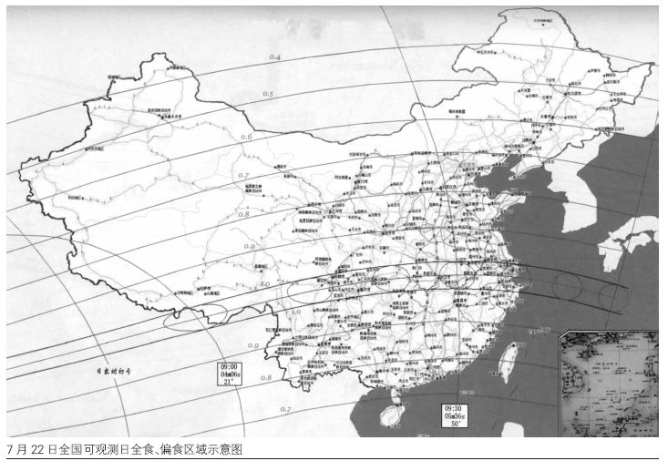 这一次日全食从印度西部开始,月影将花费8分钟时间扫过印度。再扫过尼泊尔最南部和孟加拉国极北部,经过不丹国的大部分,穿越缅甸北部,擦过西藏一角(察隅),进入云南,最终,在太平洋东部结束。全食带面积只占地球表面的0.71%,而且很大一部分在海上。因此,这一次日全食的最佳观测地点在我国。